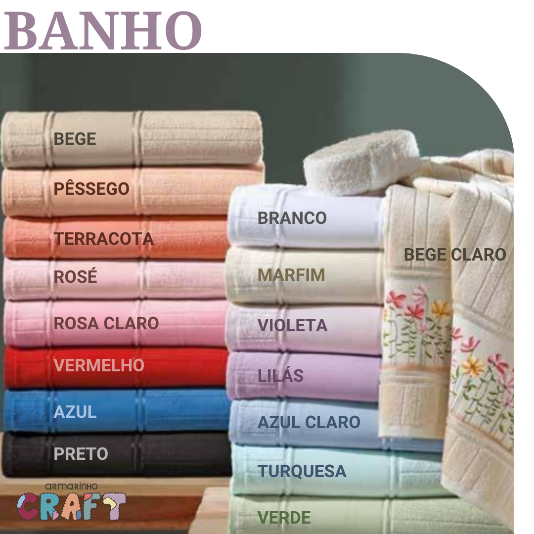 - Toalha de banho no tamanho 70cm x 1,40m.